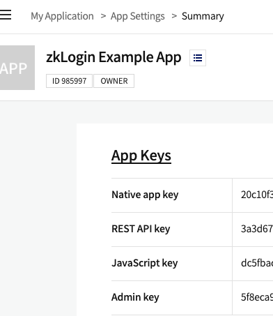 Native app key: Used to call APIs through the Android or iOS SDK.